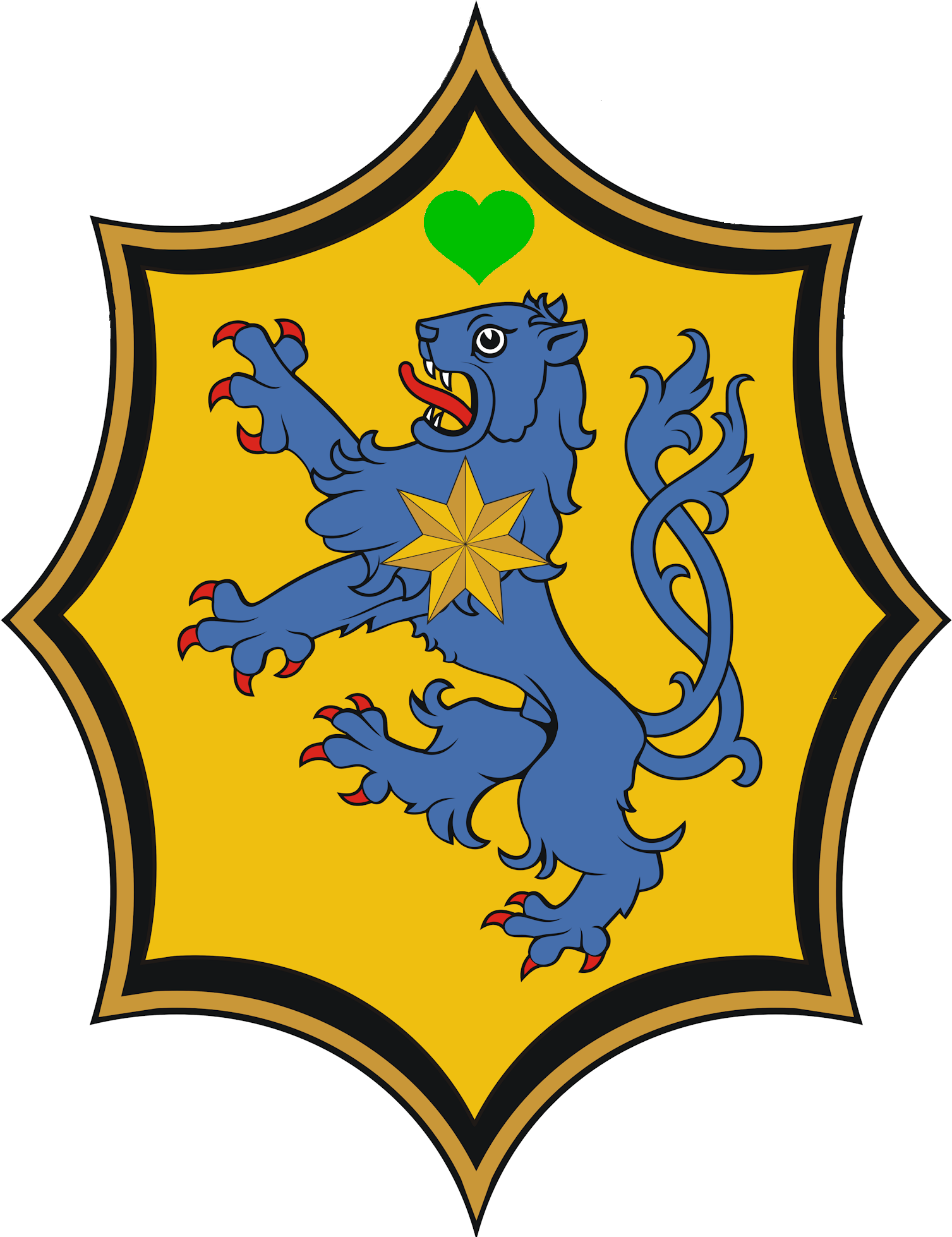 pose, with a gold seven-pointed star placed over the lion, a closed