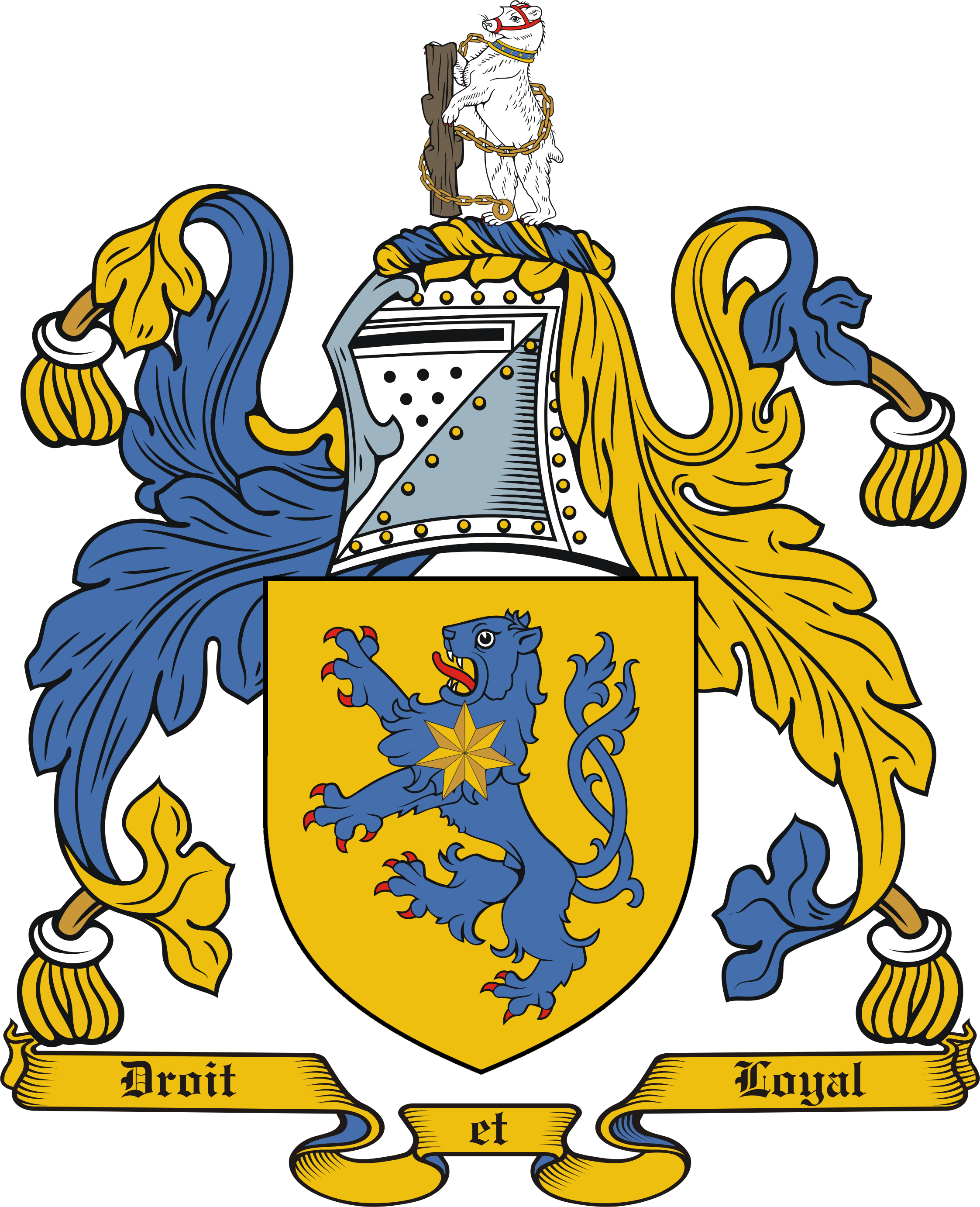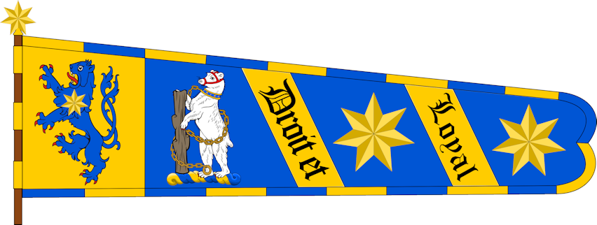 The motto Droit et Loyal, is French for Just